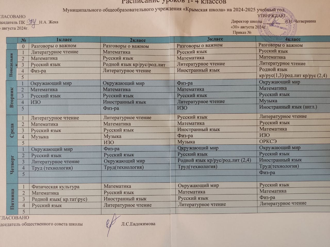 Расписание уроков для учащихся 1-4 классов