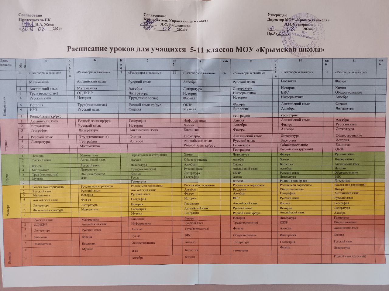 Расписание уроков для учащихся 5-11 классов